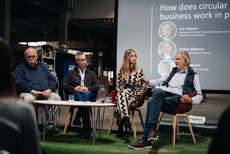 Efter Websters föredrag följde ett panelsamtal modererat av Isabell Millestu, där Webster tillsammans med Anders Wijkman och Inregos grundare och vd Henrik Nilsson diskuterade hur olika aktörer kan bidra till att förverkliga den cirkulära ekonomin i praktiken. ”Sätt press på politikerna” var Wijkmans andemening och Nilsson avrundade samtalet med ”Just do IT!”, och antydde att det också handlar om mod - att komma igång och ta första steget.
