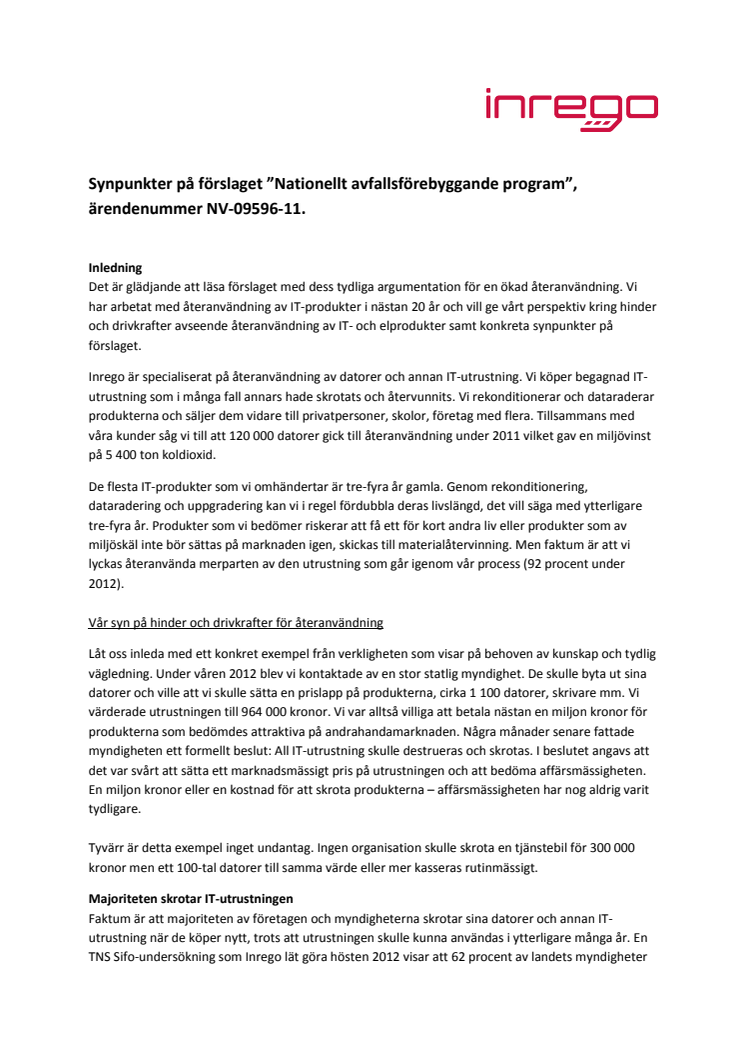 • Remiss Naturvårdsverkets avfallsförebyggande program