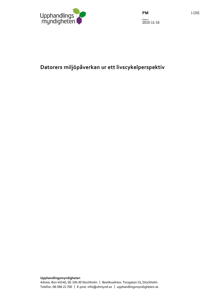 • Datorers miljöpåverkan ur ett livscykelperspektiv