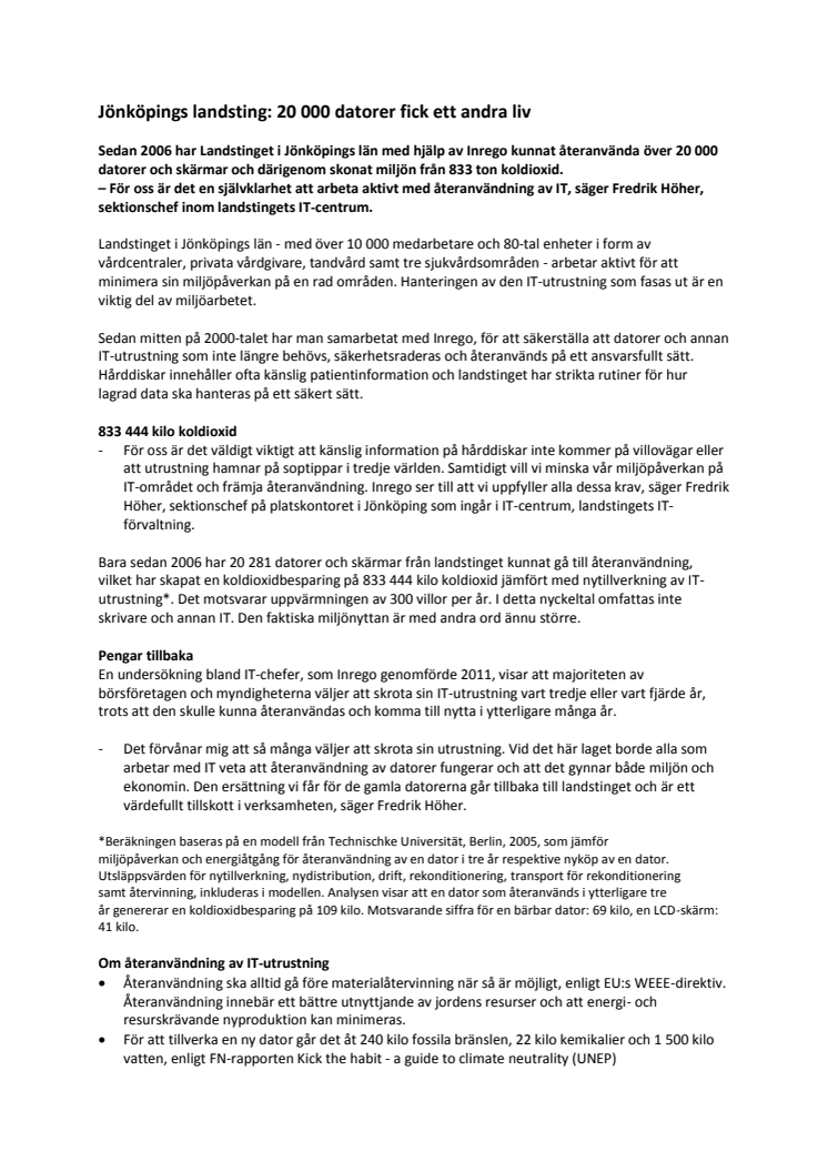 • 20 000 datorer från Jönköpings landsting fick ett andra liv